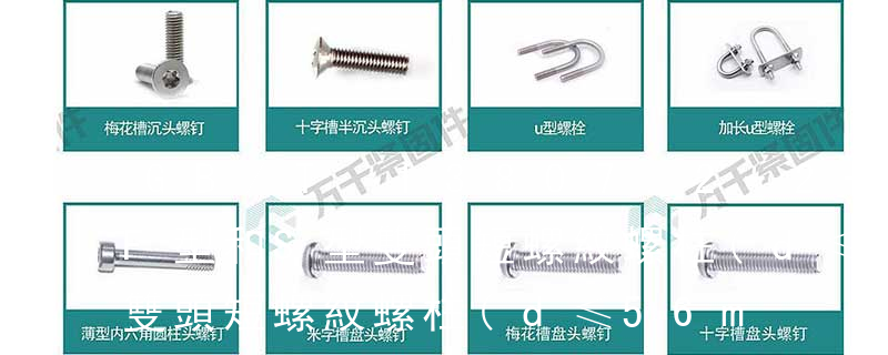 GB5779.1 緊固件表面缺陷螺栓,螺釘和螺柱一般要求 GB5779.3 緊固件表面缺陷螺栓,螺釘和螺柱特殊要求 GB90 緊固件驗收檢查,標志與包裝 GB1237 緊固件的標記方法 雙頭螺栓標準GB-T 898 雙頭螺栓標準規(guī)定了螺紋直徑為M2~M56, 不一定一樣,分三種情況,可查閱該標準。1.兩端均為粗牙普通螺紋,d=10mm、l=50mm、性能等級為4.8級、不經(jīng)表面處理、B型、bm=1.5d的雙頭螺柱的標記:螺柱GB/T 899 M10×50 2.旋入機體一端為粗牙普通螺紋,旋