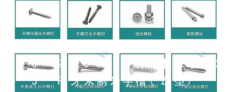1、Flat:平頭 (鎖入后,頂部與工作件齊平)2、Oval:色拉頭、O頭、半沉頭 3、Round:圓頭 4、Pan:圓扁頭 5、Truss:大圓扁頭 6、Hex:六角頭 A-5:Finish Code/外觀處理。公制自攻螺絲 :于品名后方直接標示 Tapp 主要分類包括普通螺絲、機螺絲、自攻螺絲和膨脹螺絲三種。 有頭螺釘Cap screw 過去限于全牙的扣件。 六角頭螺釘Hex cap screw與大六角螺栓Hex bolt 顧名思義為頭部為六角型的外螺紋扣件,設計為使用扳手轉動。依照ASME B18.2.1標準,六