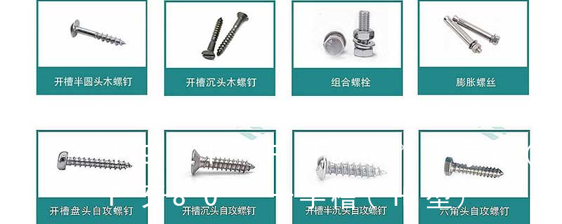 (鐵板牙自攻螺絲) B-2: Plastic Tapping Screw. (塑膠用,自攻螺絲) C: Wooden Screw : 木工螺絲 D: Drywall Screw :水泥墻螺絲 E: Self Drilling Screws鉆尾螺絲(不銹鋼鉆尾螺絲,復(fù)合材料鉆尾螺絲) F:膨脹螺絲,四片膨脹螺絲又
