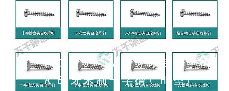 自切自攻螺釘有以下幾種型式:十字槽盤頭自切自攻螺釘,十字槽沉頭自切自攻螺釘。十字槽半沉頭自切自攻螺釘,六角頭自切自攻螺釘。3、自擠自攻螺釘(自攻鎖緊螺釘)自擠自攻螺釘的螺紋一般為機螺紋,很少采用自攻螺紋。在扳擰 ④頭型 :用字母來表示頭型的種類,可參看前文常用螺釘頭型分類。 ⑤牙型/尾型 : 用字母來表示牙型/尾型的種類,可參看前文“常用螺釘牙型/尾型分類”。 ⑥槽型 :參看前文“我司常用螺釘槽型分類”,十字槽或無槽(如沖六角頭