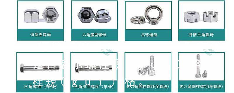 螺母常用的國家標準有《GB41 Ⅰ型六角螺母——C級》、《GB6170 Ⅰ型六角螺母——A、B級》、《GB6171Ⅰ型六角螺母—細牙—A、B級》、《GB6172六角薄螺母——A、B級—倒角》、《GB6173六角薄螺母——細牙—A、B級》; 1、Flat:平頭 (鎖入后,頂部與工作件齊平)2、Oval:色拉頭、O頭、半沉頭 3、Round:圓頭 4、Pan:圓扁頭 5、Truss:大圓扁頭 6、Hex:六角頭 A-5:Finish Code/外觀處理。公制自攻螺絲 :于品名后方直接標示 Tapp