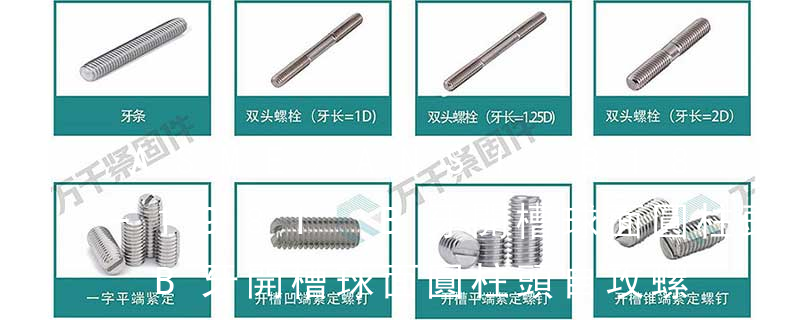 1)開槽普通螺釘多用于較小零件的連接。它有盤頭螺釘、圓柱頭螺釘、半沉頭螺釘和沉頭螺釘。盤頭螺釘和圓柱頭螺釘?shù)尼旑^強度較高,瑁在普通的部件連接上;半沉頭螺釘?shù)念^部呈弧形,安裝后它的頂端略外露,且美觀光滑,一般